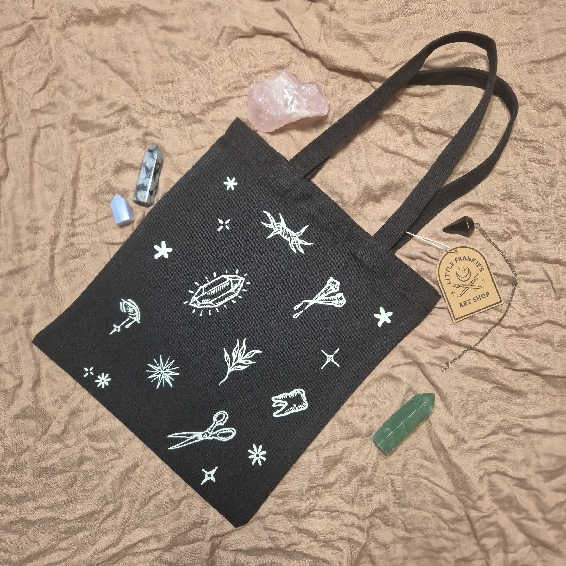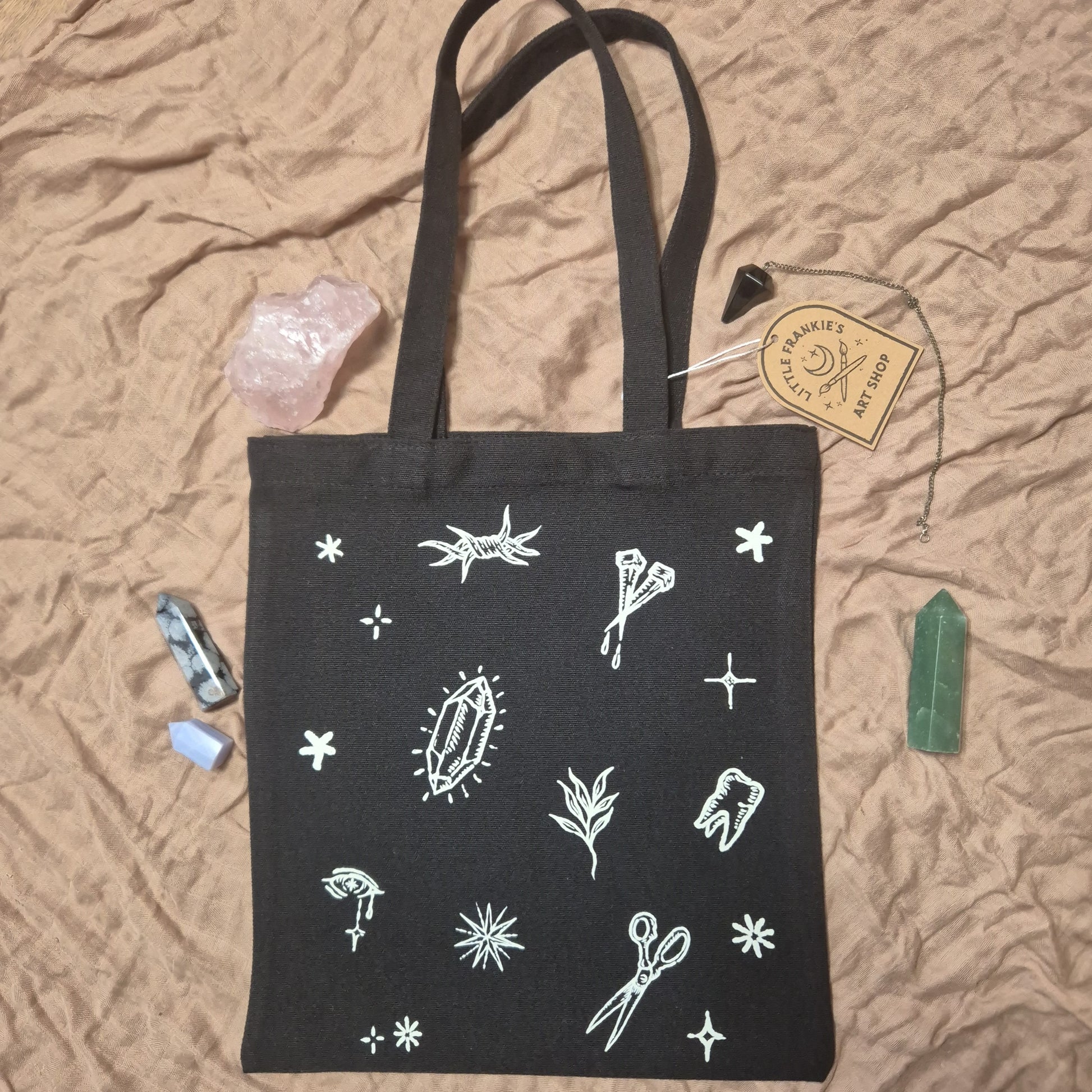 Hand-decorated on both sides - with tattoo-inspired flash from Little Frankie’s Tattoo Co., each bag features a one-off sticker arrangement, making it as individual as you are.