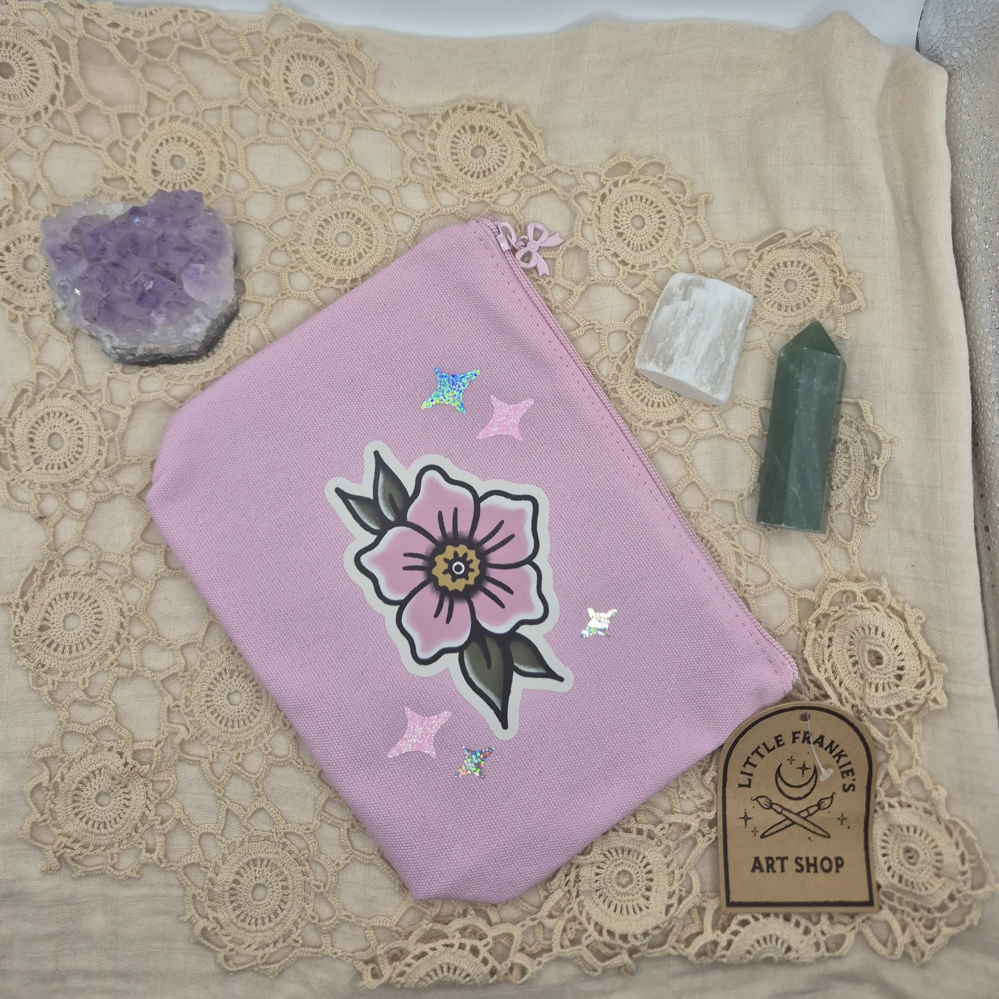 A One-of a Kind Zippy pouch featuring original art by Little Frankie's Tattoo Co. Artists.