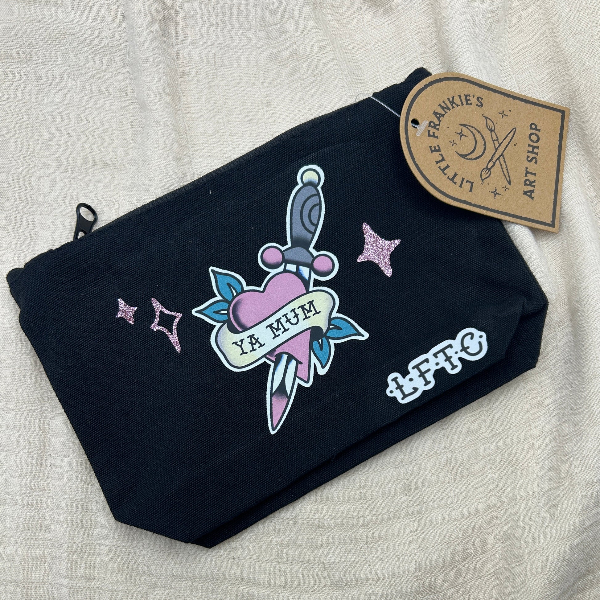 A One-of a Kind Zippy pouch featuring original art by Little Frankie's Tattoo Co. Artists.