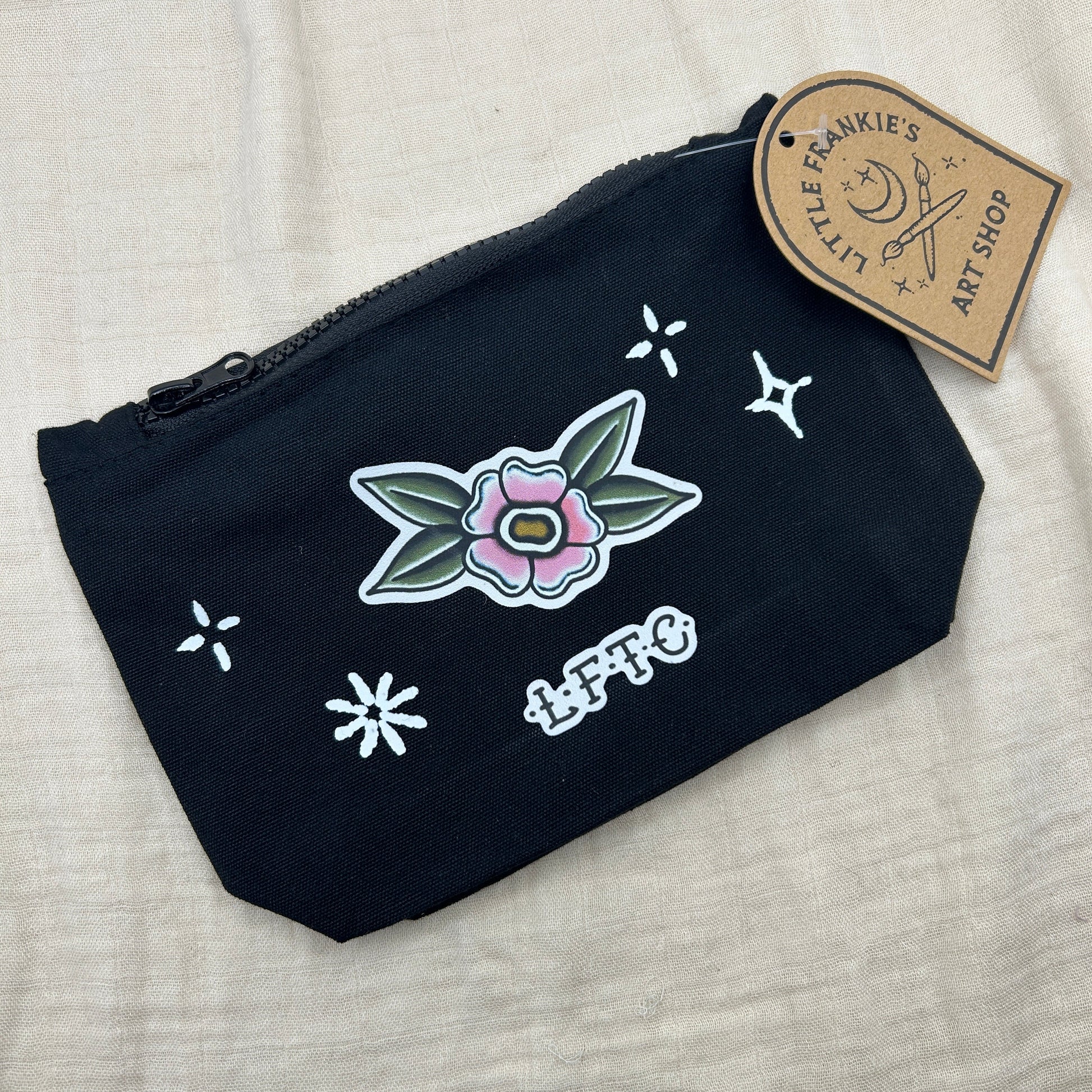 A One-of a Kind Zippy pouch featuring original art by Little Frankie's Tattoo Co. Artists.